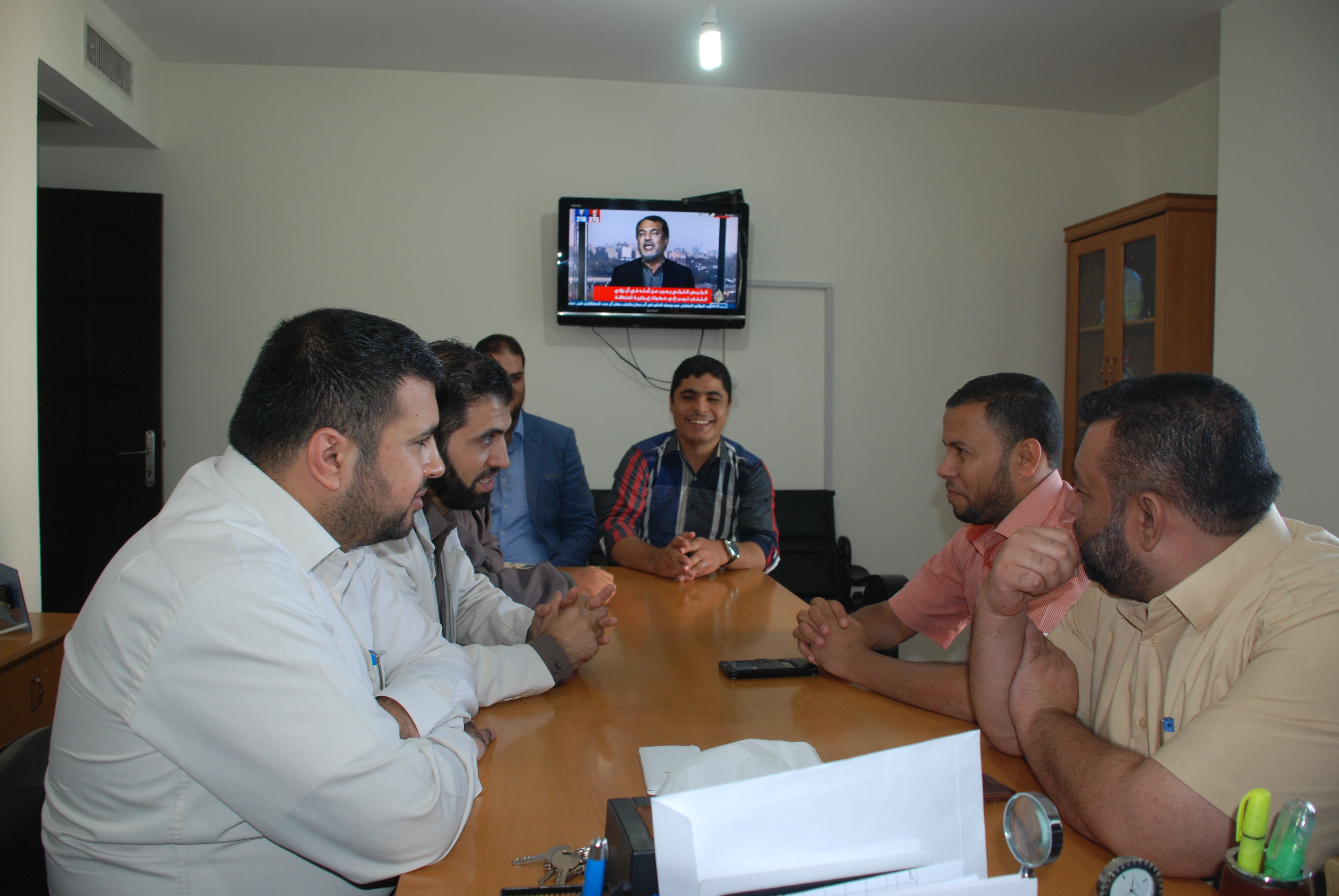 وضم الوفد الذي ترأسه إبراهيم ظاهر رئيس الكتلة؛ كل من أعضاء مجلس الإدارة محمود عياش وأيمن دلول وخالد صافي وإسماعيل الثوابتة ومنسق الكتلة حسن النجار، بينما كان في استقبالهم كل من مدير الوكالة الصحفي أحمد أبو عامر ورؤساء الأقسام وموظفي الوكالة.