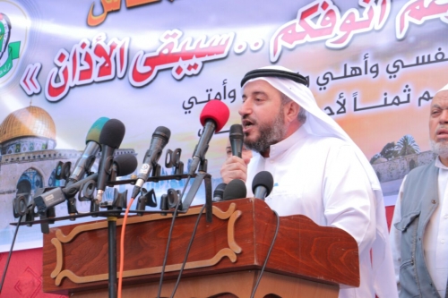 وقال النائب في المجلس التشريعي يوسف الشرافي، في كلمة أمام المشاركين في المسيرة الغاضبة: "إن هذا القرار الصهيوني غير المسبوق هو تعدي سافر على حرية المسلمين والأديان في القدس والداخل المحتل:"، مؤكدًا أن محاولات منع الأذان ستبوء بالفشل بفعل صمود الفلسطينيين وتحديهم لهذا القرار.