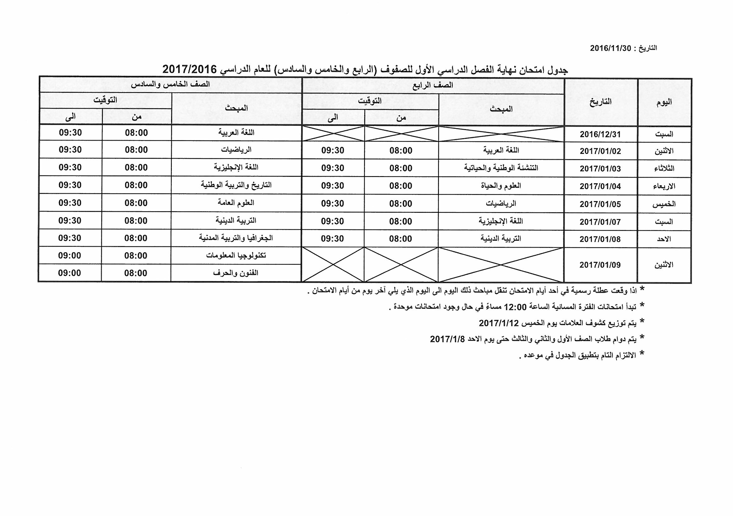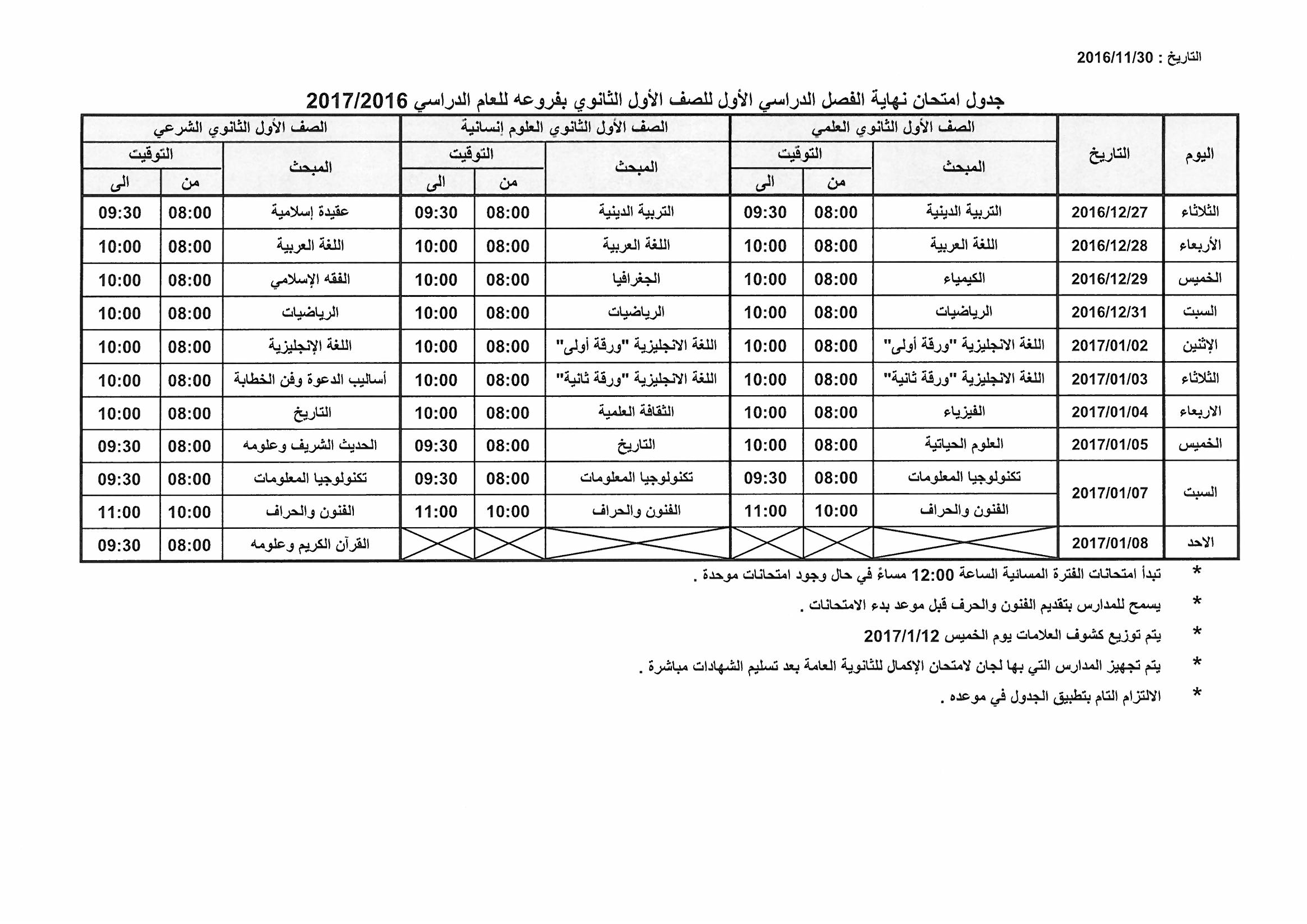 إليكم جداول الامتحانات: