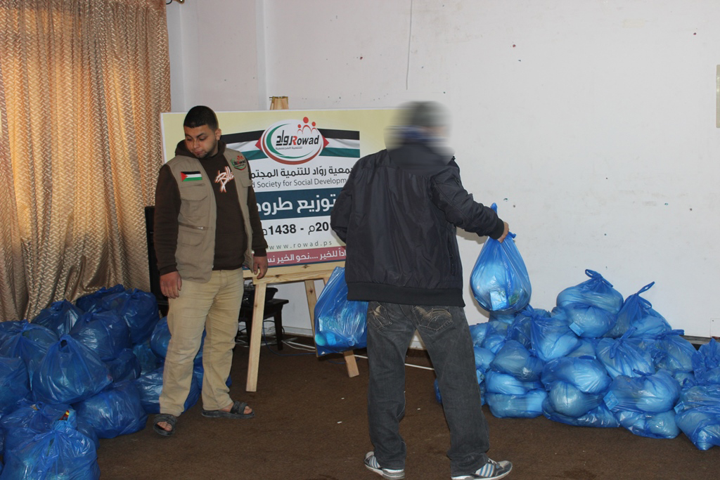 "روّاد" توزيع عشرات الطرود الغذائية للأسر المتعففة بغزة