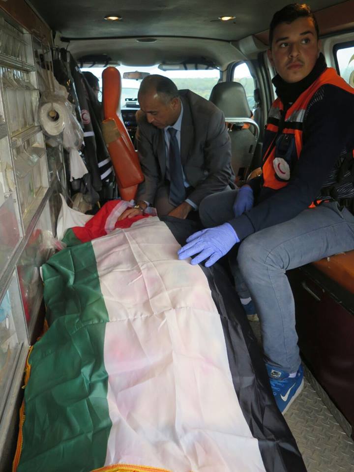 وحضر مراسم استلام الشهيد نائب محافظ جنين كمال أبو الرب، وعائلة الشهيد والارتباط العسكري والمدني الفلسطيني، وتم نقله إلى مستشفى الشهيد خليل سليمان الحكومي في مدينة جنين.