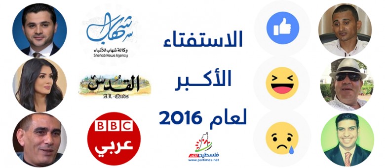 أعلنت وكالة "فلسطين الآن" الإخبارية، أن استفتاءها لعام 2016 والذي أطلقته الأحد الماضي، سيبقى لغاية الساعة 12 منتصف الليلة، حيث يعد الاستفتاء السنوي الأكبر والأضخم على مستوى الوطن.