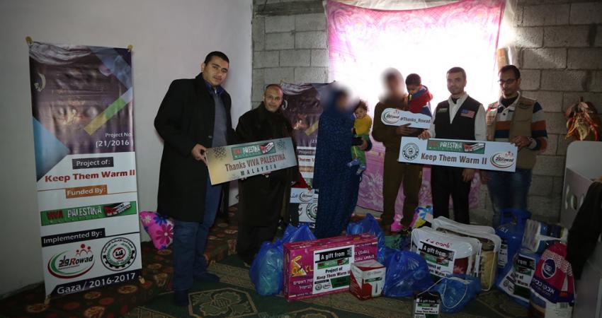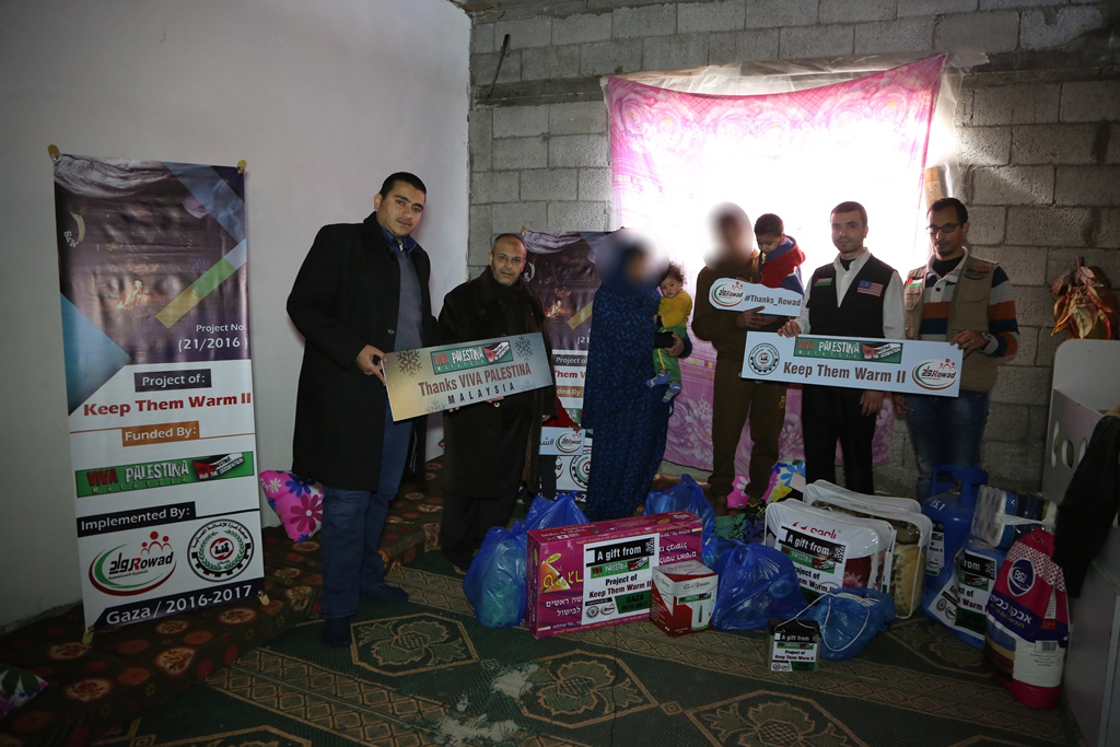 وإزاء هذه المعاناة والمأساة قامت "روّاد" بحمل رسالة هذه الأسر لمؤسسة فيفا فلسطينا ماليزيا لتقوم بدورها لتقديم المساعدات الفورية العاجلة لهذه الاسر حيث تمثلت المساعدة في توفير الثلاجة والبوتاجاز مع اسطوانة والأغطية والبطانيات وكسوة الشتاء لجميع افراد الاسرة ومساعدة مالية وشبكة إنارة آمنة وطرود غذائية ومواد تنظيف، حيث قدرت قيمة المساعدة بـــ800$ للأسرة الواحدة.