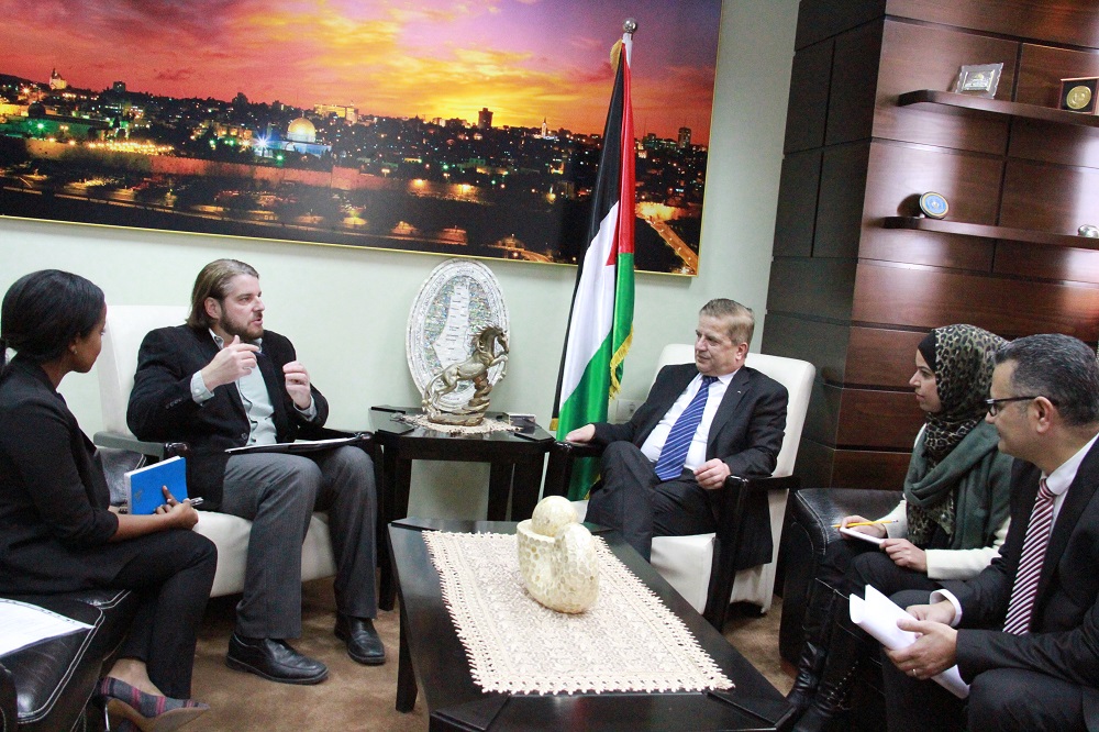 بحث وزير الصحة د. جواد عواد مع رئيس جمعية إغاثة أطفال فلسطين د. ستيف سوسبي السبل الكفيلة بتشغيل قسم أورام الأطفال وأمراض الدم الجديد في مستشفى الأطفال التخصصي في قطاع غزة وبتكلفة مالية إجمالية تصل الى 10 ملايين دولار.