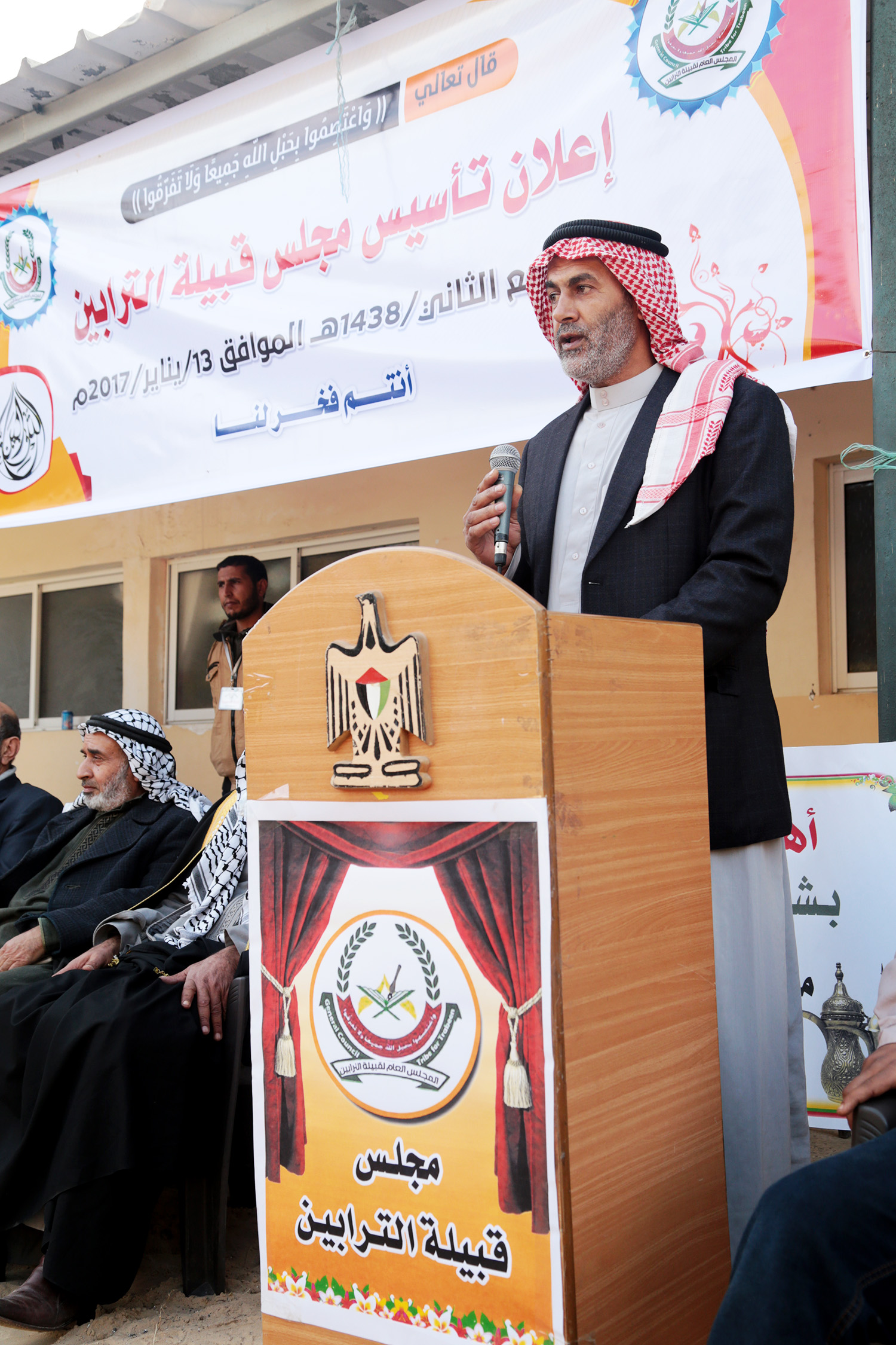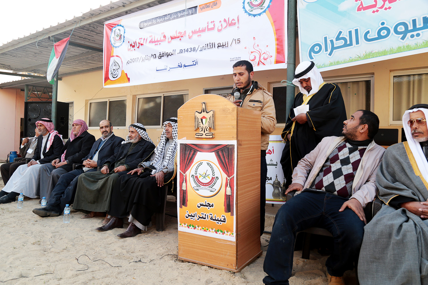 وألقى البيان الأستاذ منصور الصوفي منسق اللجنة التحضيرية للمجلس وقد أشاد في البيان بدور قبيلة الترابين في التاريخ النضالي للشعب الفلسطيني.