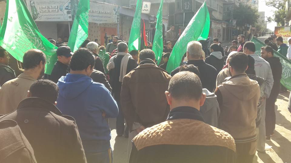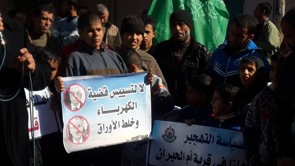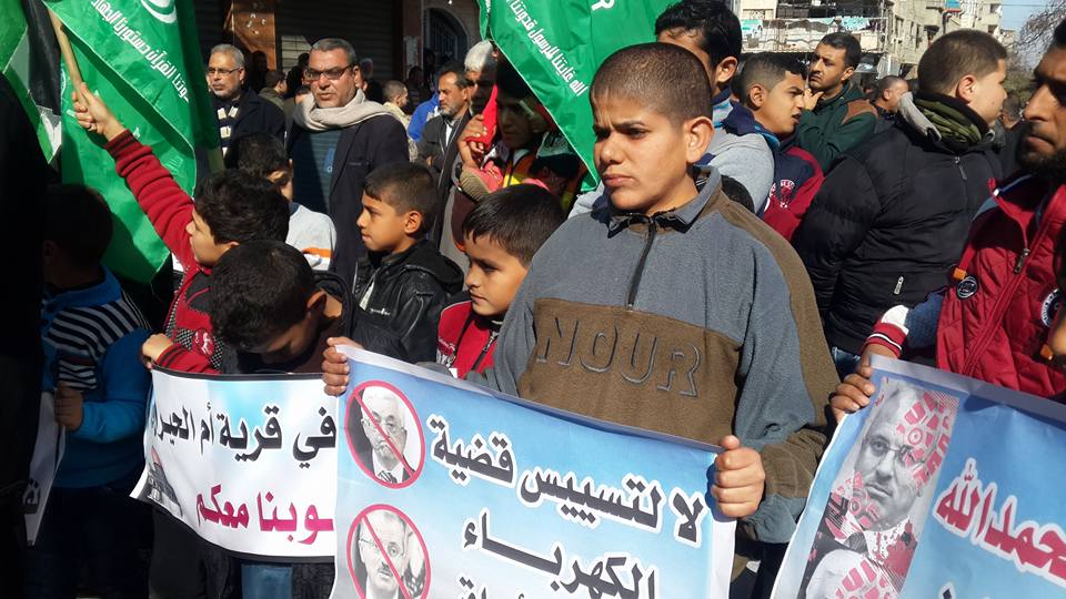 نظمت حركة المقاومة الإسلامية حماس بمخيم النصيرات وسط قطاع غزة مسيرة جماهيرية رفضا لسياسة الكهرباء التي تتبعها حكومة الحمد لله وتضامنا من أهالي قرية أم الحيران بالنقب المحتل.