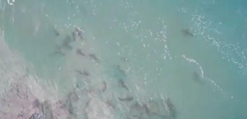 بالفيديو: تجمع لأسماك القرش قبالة سواحل الخضيرة المحتلة