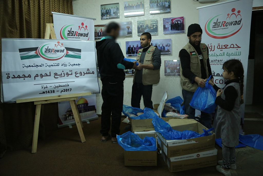 "رواد" توزّع لحوم مجمدة على الأسر المستورة بغزة