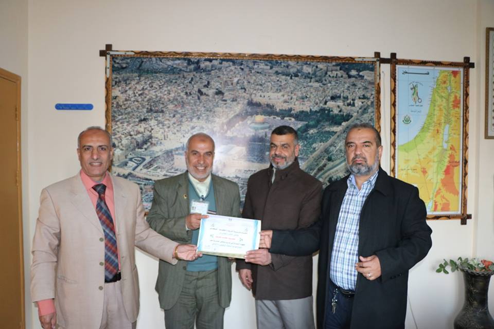 كرم مدير التربية والتعليم بالوسطى علي أبو حسب الله مدرب دورة "مدونة قواعد السلوك الوظيفي" محمود بخيت رئيس قسم التعليم العام بالمديرية، بحضور مدير الدائرة الإدارية ماهر أبو زر، ومدير الدائرة الفنية ناصر السدودي، وذلك بمكتب مدير التربية والتعليم.