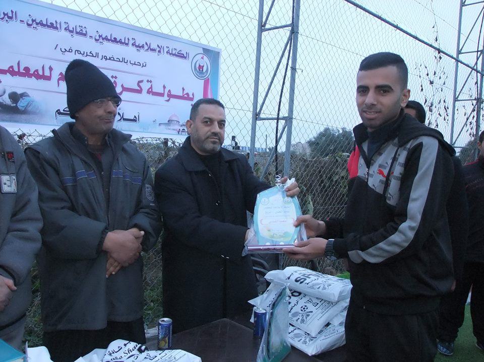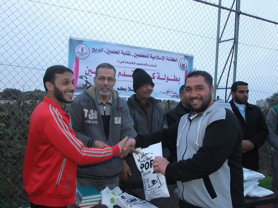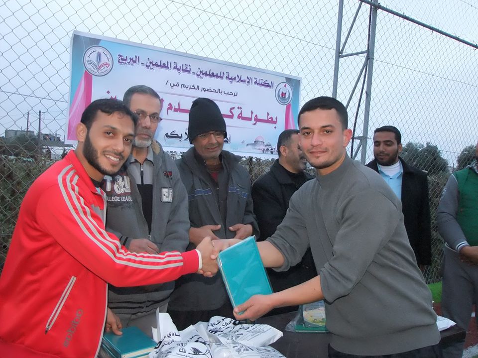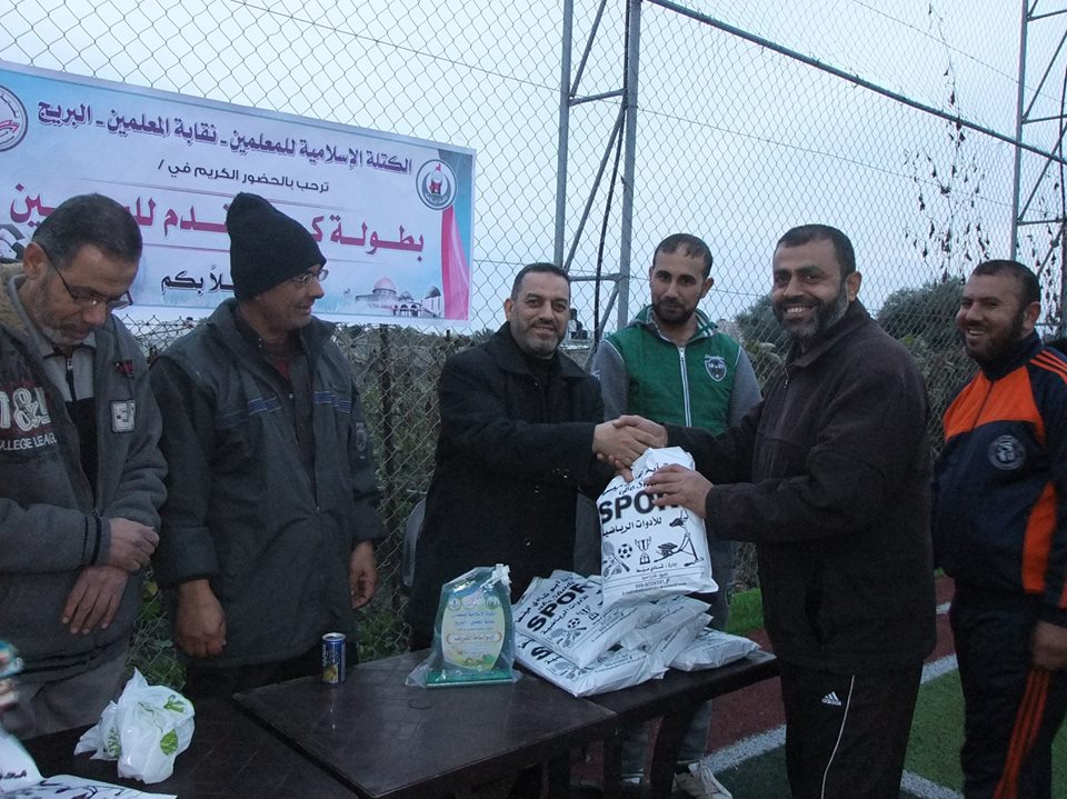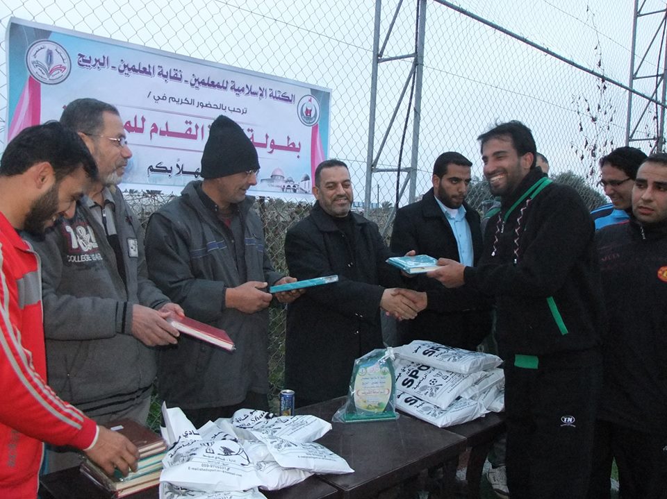 نظمت الكتلة الإسلامية للمعلمين ونقابة المعلمين في مخيم البريج وسط القطاع بطولة كرة القدم.