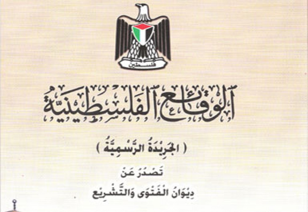 أصدر ديوان الفتوى والتشريع، العدد 128 من الجريدة الرسمية "الوقائع الفلسطينية".