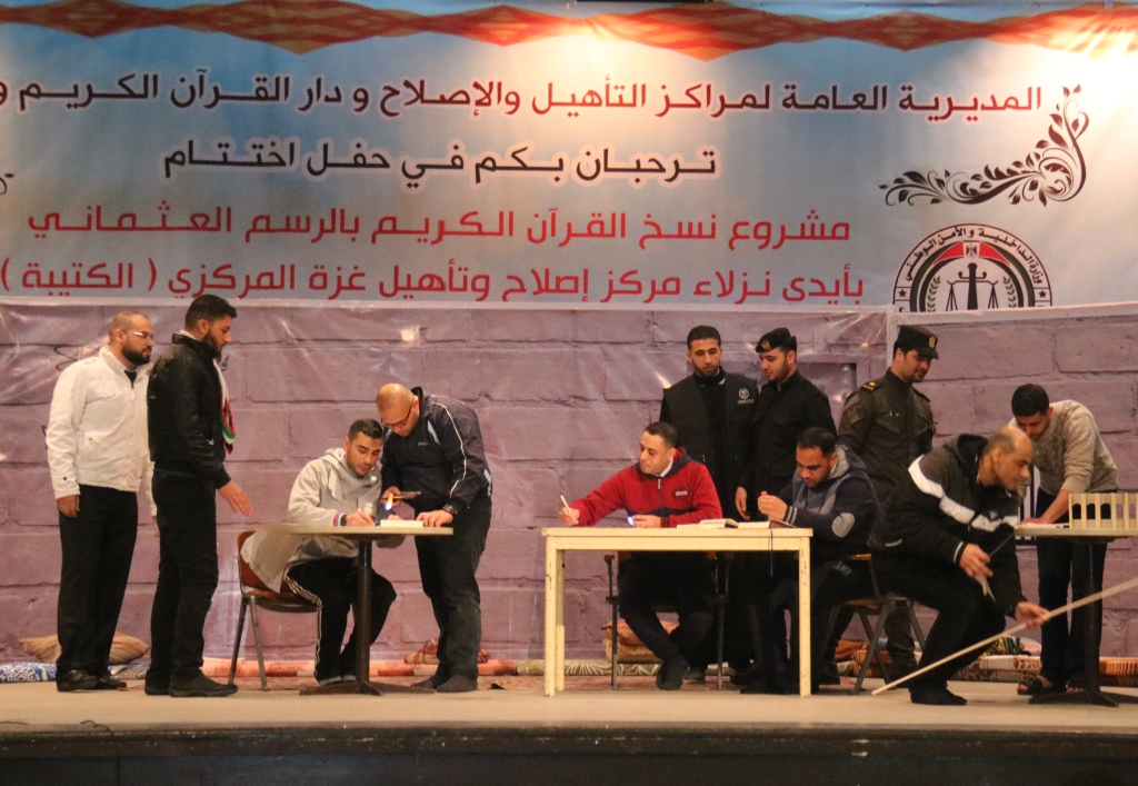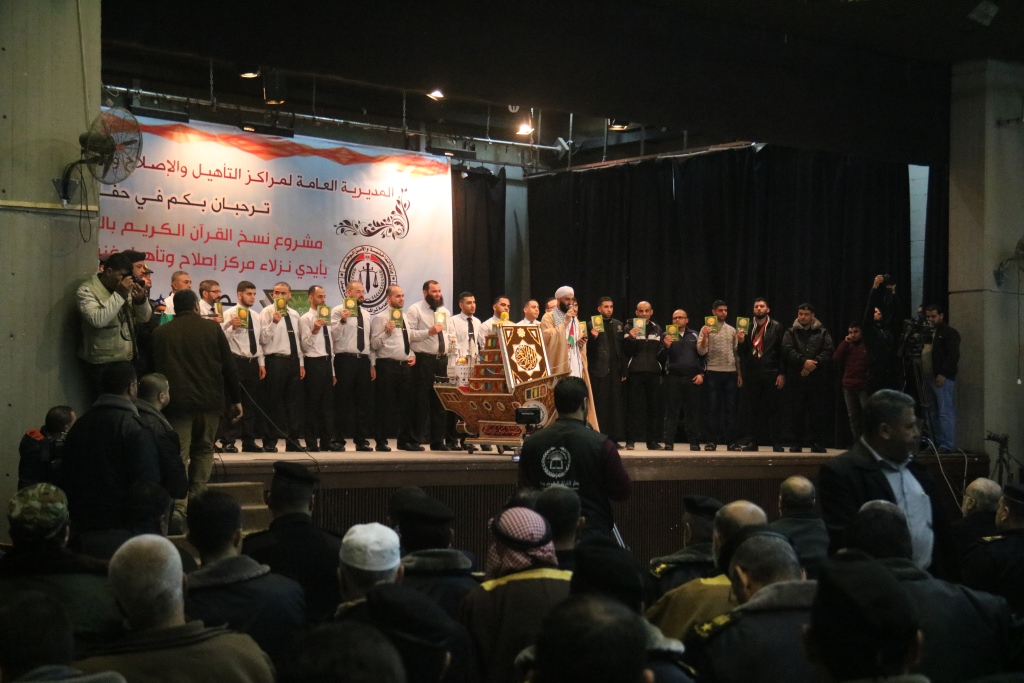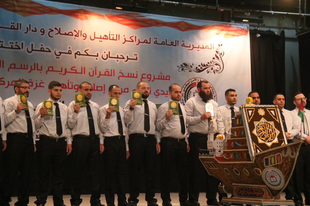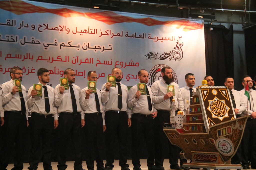 بعد جهود مضنية، قضاها مجموعة من النزلاء في مركز الإصلاح والتأهيل الرئيسي غرب مدينة غزة، استغرقت سبعة أشهر في نسخ القرآن الكريم يدويًا حسب قواعد الرسم العثماني، وبرعاية وتعاونٍ مشترك بين وزارة الداخلية بغزة، وجمعية دار القرآن الكريم والسنة.
