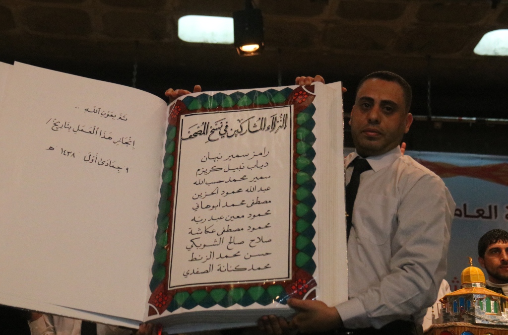 بالصور: غزة تحتفل باختتام مشروع نسخ مصحف "الإصلاح"