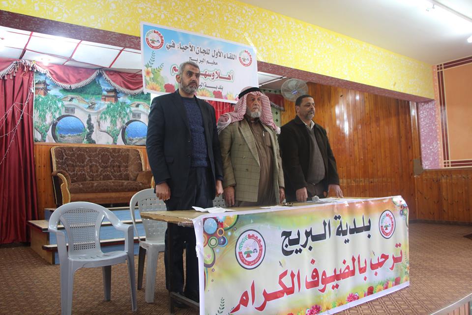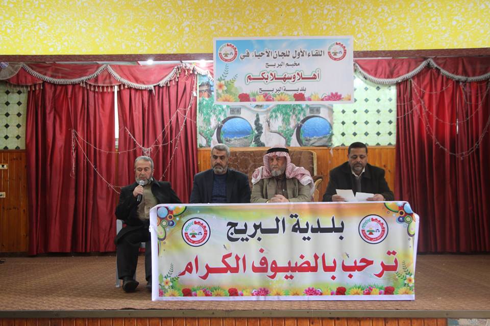 نظمت بلدية مخيم البريج وسط قطاع غزة لقاء للجان الأحياء في صالة نادي خدمات البريج بحضور رئيس البلدية أبو محمد عيسى، ومسؤول ملف لجان الأحياء في المخيم خليل حمام، وعلي الشيشنية منسق ملف لجان الأحياء.