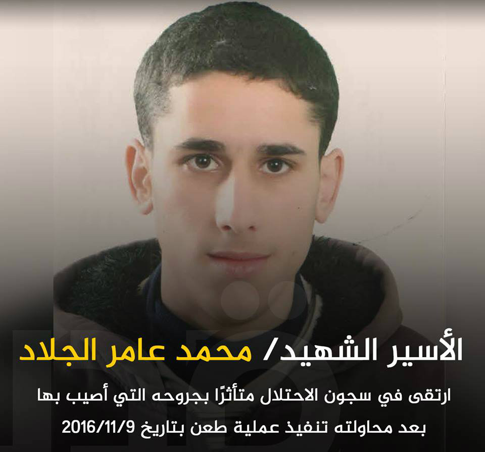 أفادت هيئة شؤون الأسرى والمحررين أن النتائج الطبية الأولية للفحوصات الطبية لجثمان الشهيد محمد عامر الجلاد (24 سنة)، من سكان طولكرم والذي تم تسليمه جثمانه يوم أمس الجمعة، تشير إلى انفجار في الرئة اليمنى، وفتحه في جدار القفص الصدري الخارجي، وتفتت في الكبد مع وجود شظايا رصاص، إضافة إلى تمزق في العمود الفقري، وكسر في عظام الحوض من الجهة اليمنى إلى الأمام.