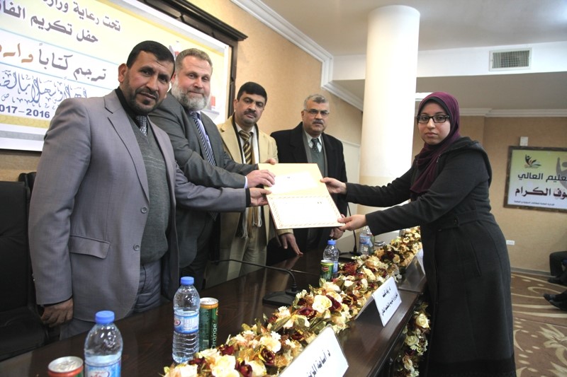 جاء ذلك خلال احتفال أقيم بمقر الوزارة بغزة بحضور د. زياد ثابت وكيل وزارة التربية والتعليم العالي ، ود. أيمن اليازوري وكيل الوزارة المساعد لشؤون التعليم العالي ، ود. أسامة المزيني وزير التعليم السابق وممول الجائزة ، و د. عادل عوض الله رئيس الجامعة الإسلامية ورئيس لجنة مشروع الجائزة، وحضور العديد من الشخصيات الاعتبارية والرسمية.