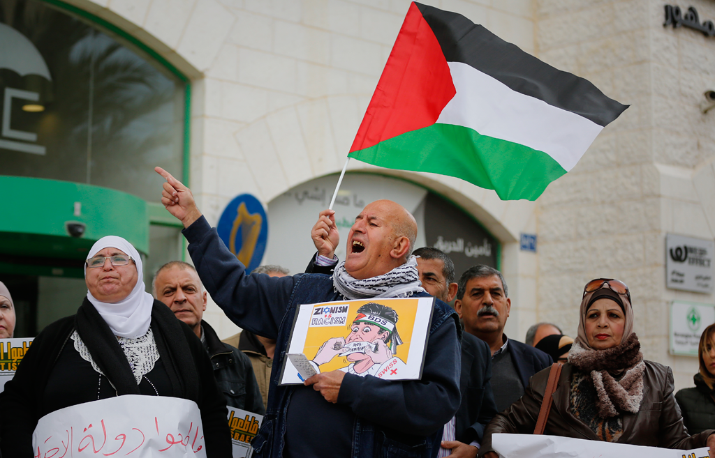 نظمت حركة المقاطعة (BDS) اليوم الإثنين، قفة احتجاجية أمام مقر الممثلية السويسرية بمدينة البيرة احتجاجا على قرار البرلمان السويسري باعتبارها حركة عنصرية تدعو إلى اللاسامية.