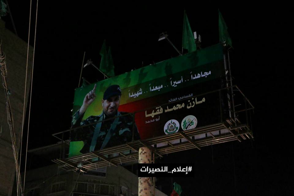 علقت لافتة كبيرة وسط مخيم النصيرات وسط قطاع غزة، مساء الأحد، حملت تهديدا للاحتلال بالرد على اغتيال الأسير المحرر القائد الشهيد مازن فقها.