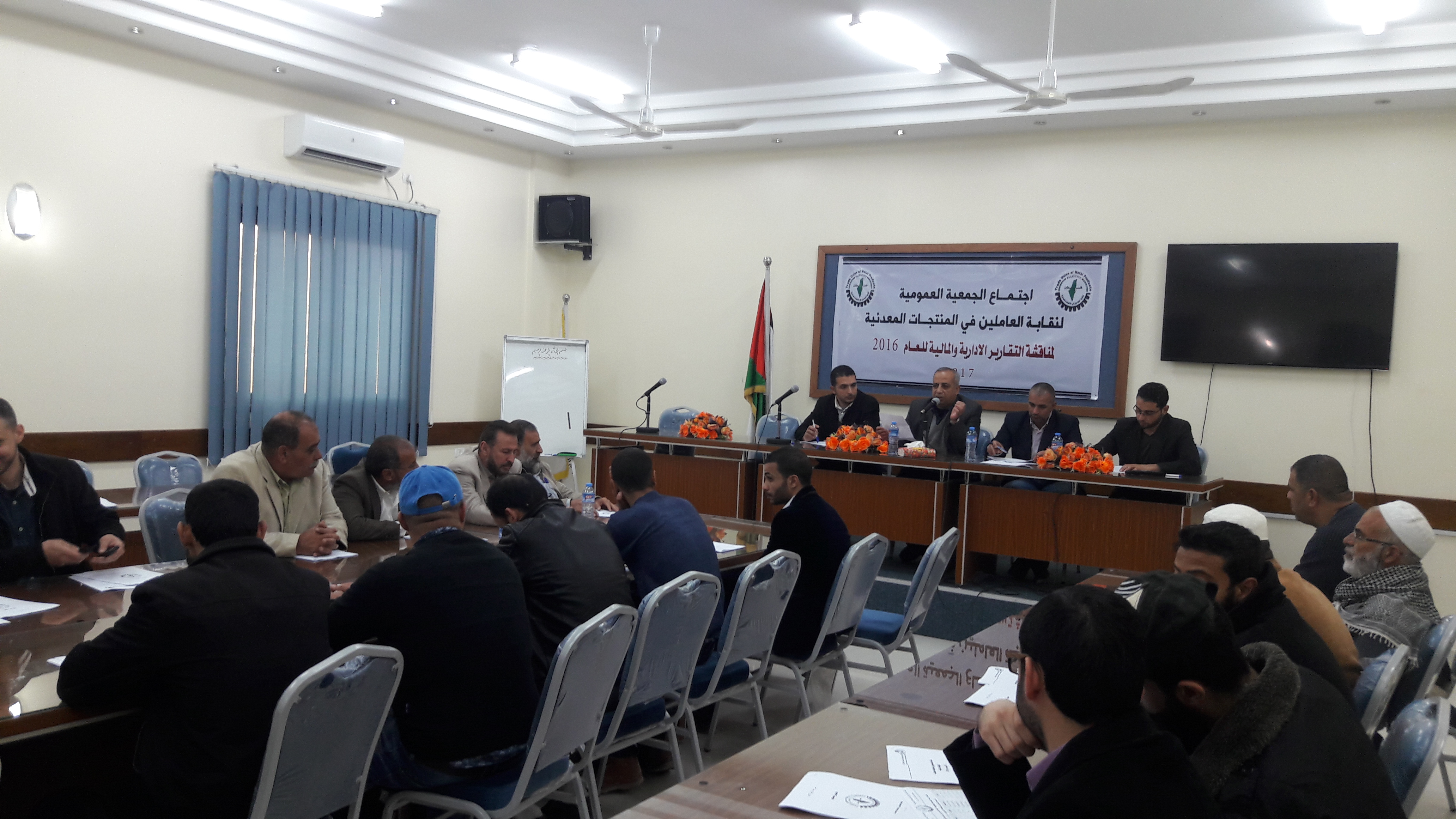 عقدت نقابة العاملين في المنتجات المعدنية اجتماع للجمعية العمومية اليوم الخميس بمقر مركز غزة التنمية البشرية بحضور رئيس النقابة سامي العمصي ومجلس الادارة وبحضور ساجي قديح مدير دائرة النقابات من وزارة العدل وبحضور 21 من اصل38 من الجمعية العمومية .