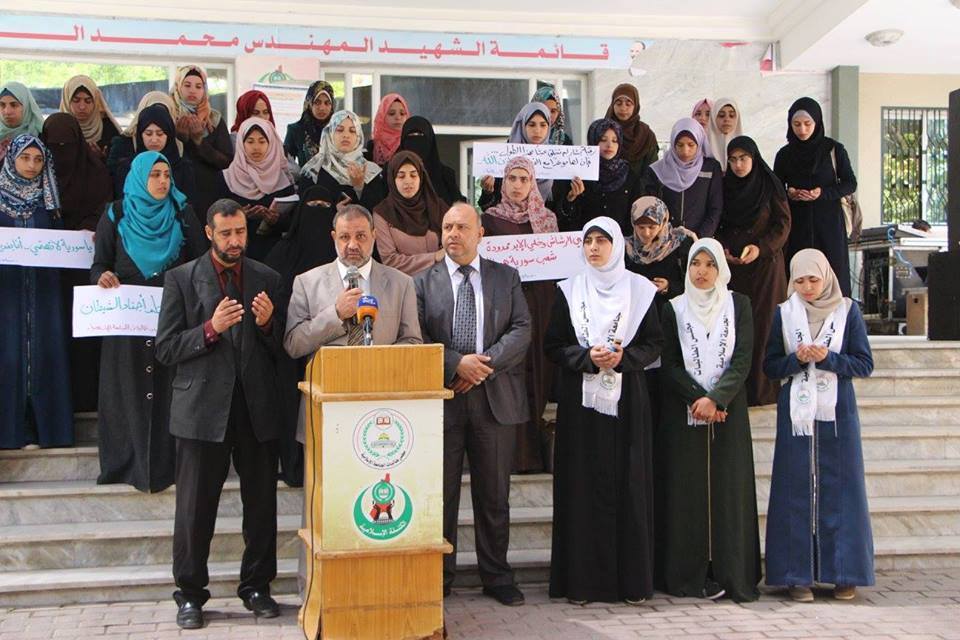 نظم مجلس طالبات الجامعة الإسلامية وقفة طلابية تضامناً مع أهل سوريا بعنوان : " سوريا تُباد والأمة في سُبات ".