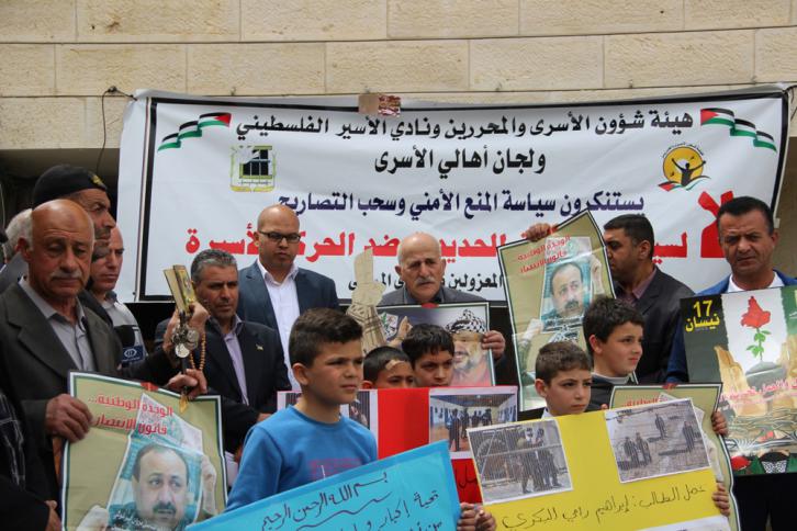 وشهد الاعتصام الذي أقيم أمام مكاتب الصليب الأحمر بالمحافظة العديد من المؤسسات الرسمية وأهالي الأسرى وعدد من المواطنين رافعين شعارات منددة بالمنع الأمني وداعمة لأبنائهم في السجون الإسرائيلية.