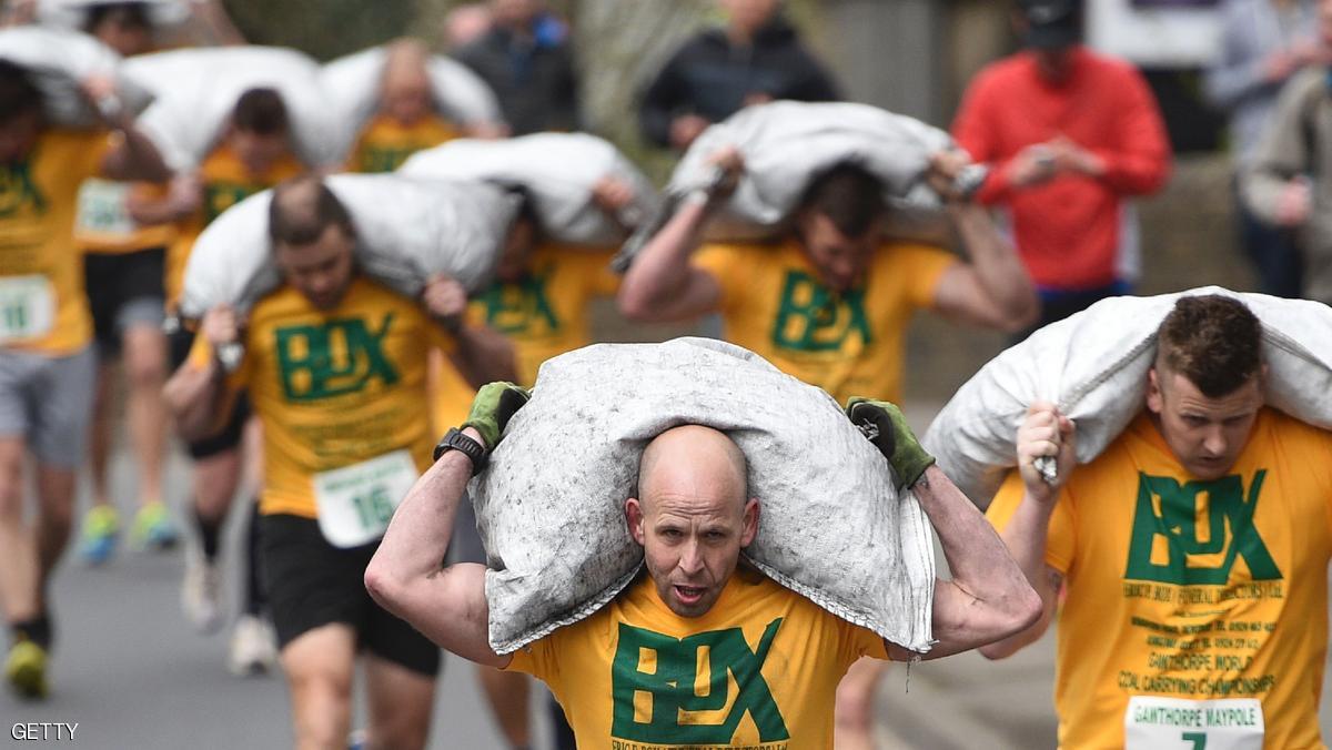 تغلب المزارع أندرو كوريغان على عشرات المنافسين، ليفوز بلقب بطولة بريطانية قديمة لحمل الفحم، بعد أن سار مسرعا في بلدة بشمال إنجلترا حاملا على ظهره كيسا يزن 50 كيلوغراما.