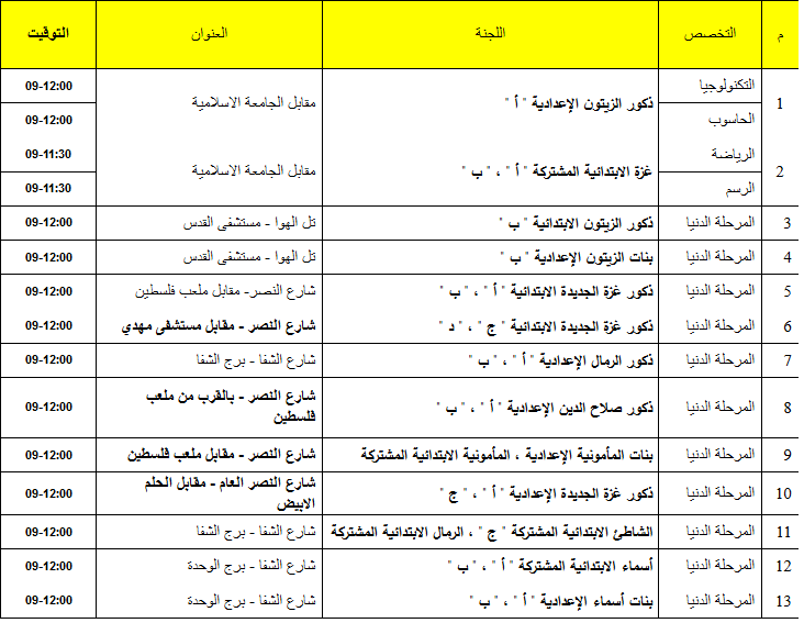 أعلنت وكالة هيئة الأمم المتحدة لإغاثة وتشغيل اللاجئين الفلسطينيين بقطاع غزة، للذين سبق وأن تقدموا لوظيفة مدرس القائمة النهائية للأسماء وأرقام الجلوس وأماكن انعقاد الامتحانات الكتابية لعام والمقرر عقده بتاريخ 1 مايو 2017.