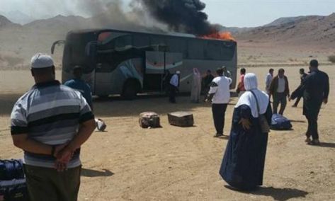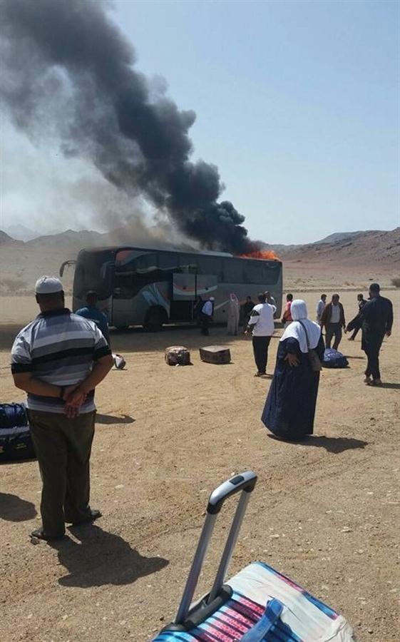 وعمل السائق على الفور بإخراج المعتمرين من الحافلة عقب اندلاع النيران في المحرك وقبيل وصولها إلى جميع أجزاء الحافلة.