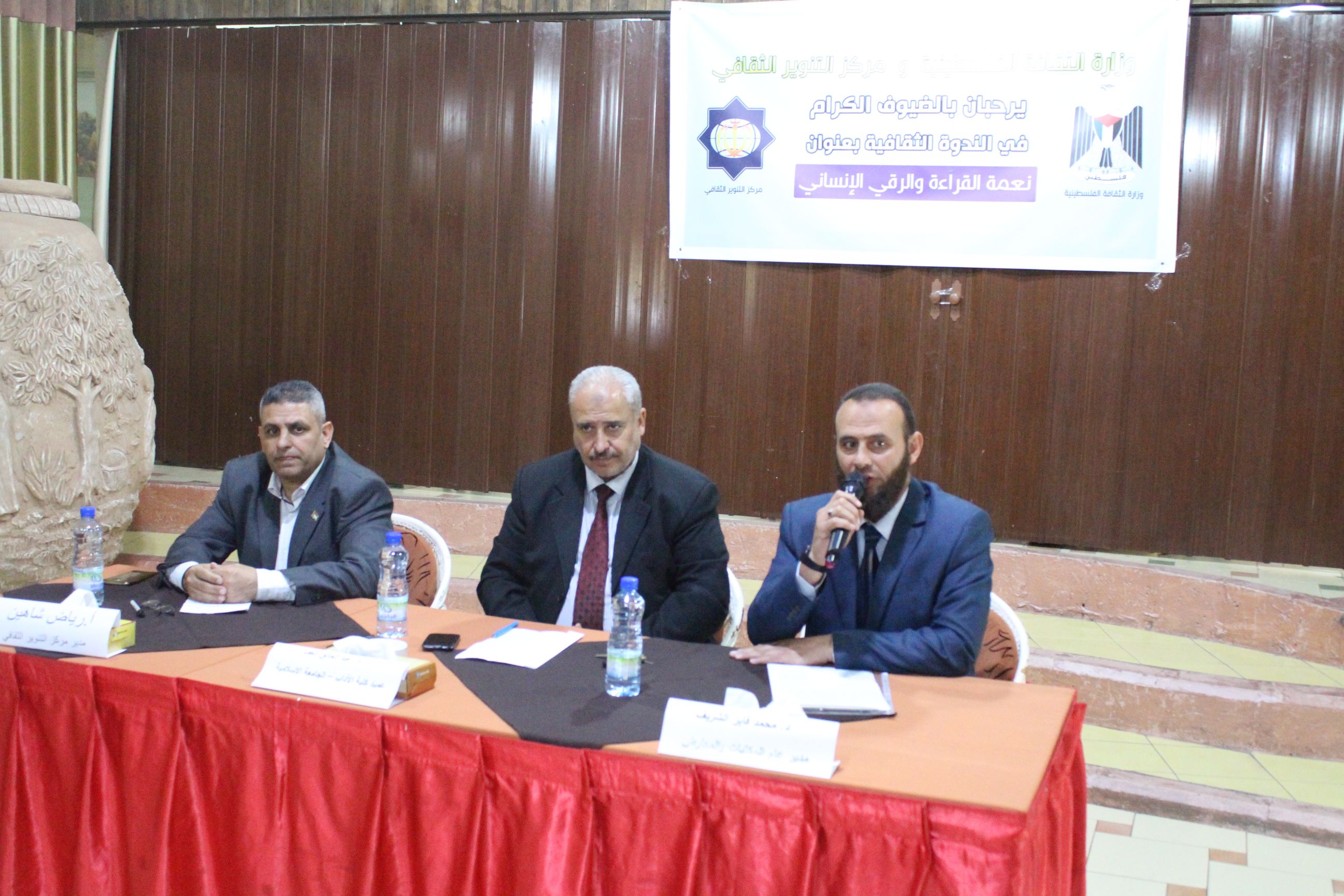 نظمت وزارة الثقافة الفلسطينية وبالتعاون مع مركز التنوير الثقافي، ندوة ثقافية حول دور القراءة في الرقي الإنساني، بحضور عدد من المدراء العامين بالوزارة، ولفيف من الشخصيات الاعتبارية، والمثقفين والمهتمين.