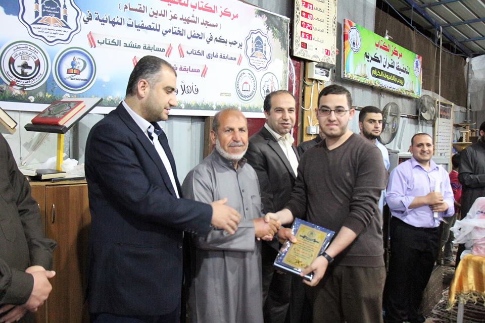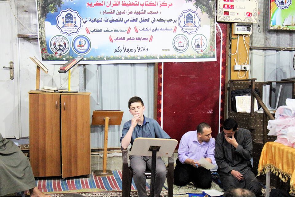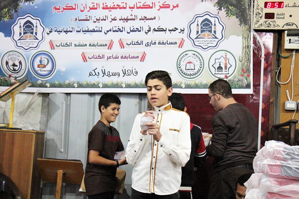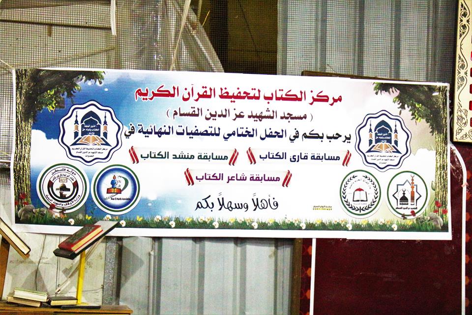 اختتم مركز الكتاب لتحفيظ القرآن الكريم، بالتعاون مع دار القرآن الكريم والسنة، ومديرية أوقاف الوسطى، مسابقة الكتاب لطلاب مخيم النصيرات، والتي اشتملت على (قارئ الكتاب، منشد الكتاب، شاعر الكتاب).