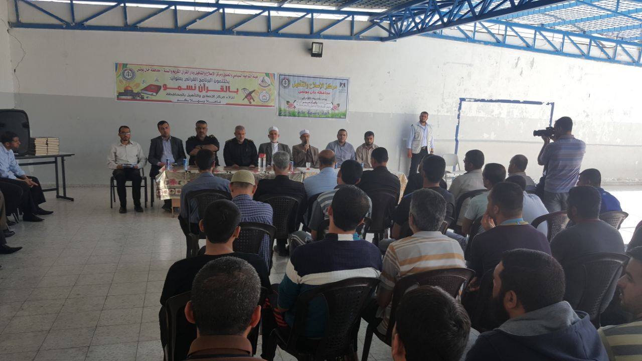 وحضر الاحتفال النائب يونس الأسطل والعقيد فؤاد أبو بطيحان مدير عام السجون ومدير مركز التأهيل والإصلاح في خانيونس.