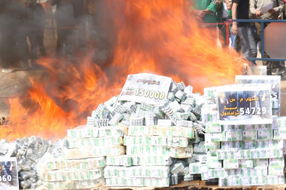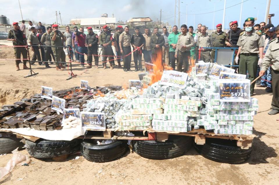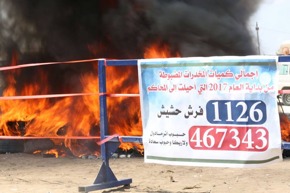 أتلفت وزارة الداخلية والأمن الوطني في مدينة غزة، صباح اليوم الخميس، مواد مخدرة تم ضبطها منذ بداية عام 2017، وقد أحيلت إلى المحاكم، ونسبتها نحو 1126 فرش حشيش و467343 حبوب مخدرة ترامدول ولايريكا وحبوب سعادة.