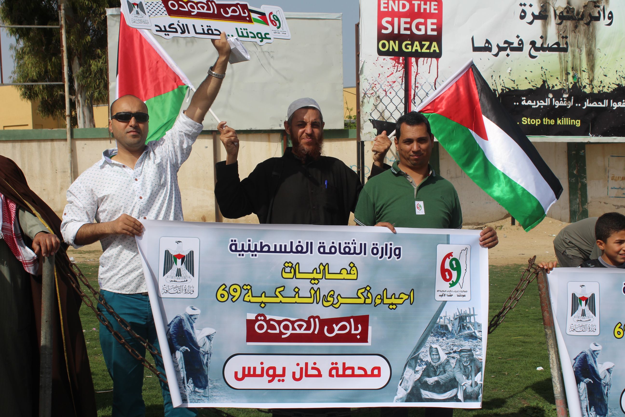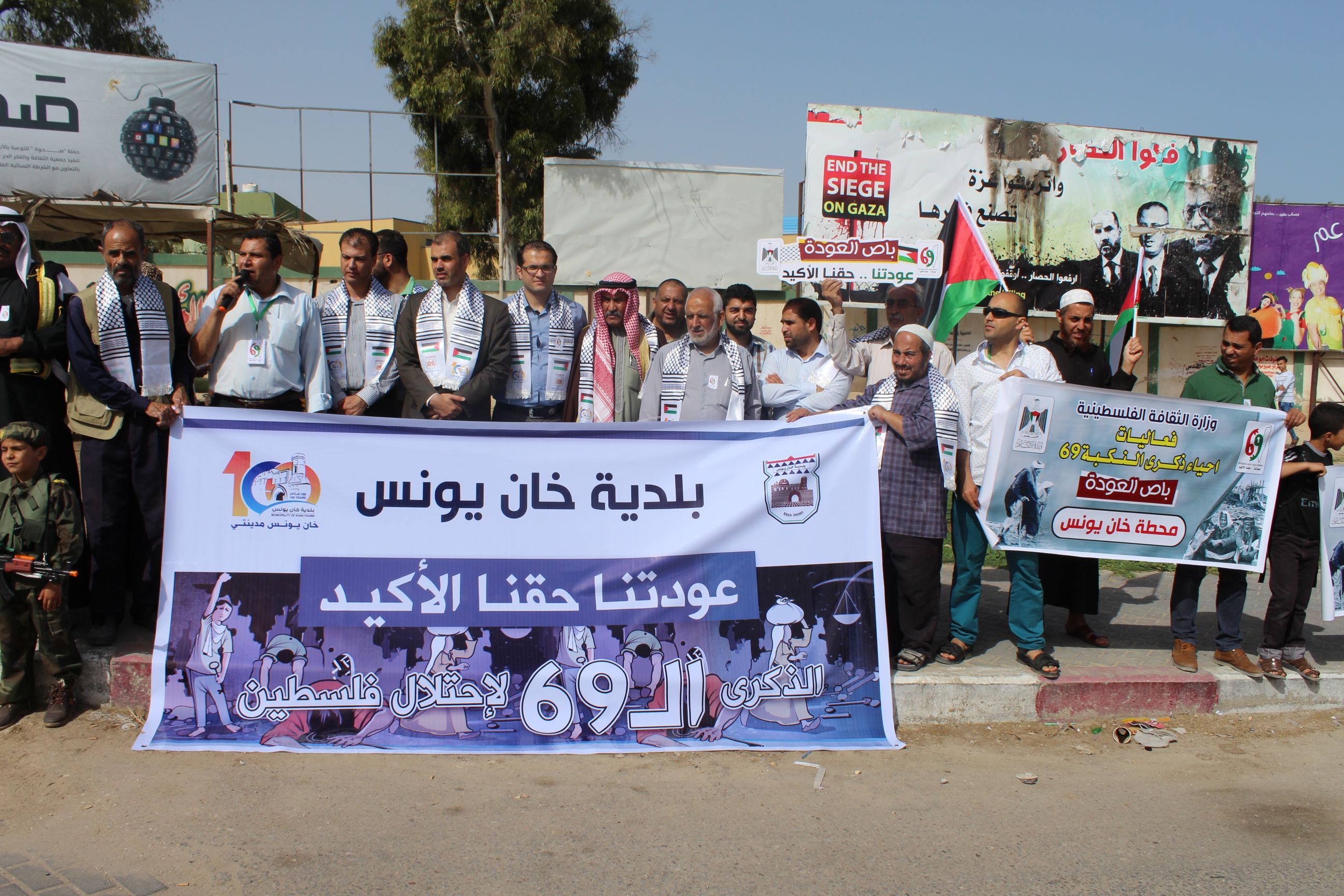 وفي معبر بيت حانون، افتتح د. أنور البرعاوي وكيل مساعد وزارة الثقافة الاحتفالية المركزية لإحياء ذكرى النكبة، حيث تحدث خلال كلمة له حول حق عودة اللاجئين الفلسطينيين إلى ديارهم التي هجروا منها عام 1948، مؤكداً على ضرورة ربط الأجيال الفلسطينية المتعاقبة به، موجها تحيته للعشرات والمئات من أبناء الشعب الفلسطيني، الذين شاركوا في مسير باص العودة.