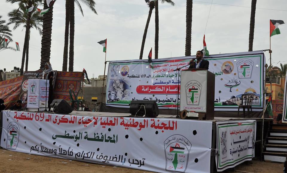 أحيت اللجنة الشعبية للاجئين بمدينة دير البلح وسط قطاع غزة الذكرى الـ69 لنكبة الشعب الفلسطيني، بمهرجان جماهيري كبير نظمته اللجنة تحت عنوان "عام الكرامة".