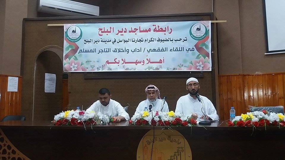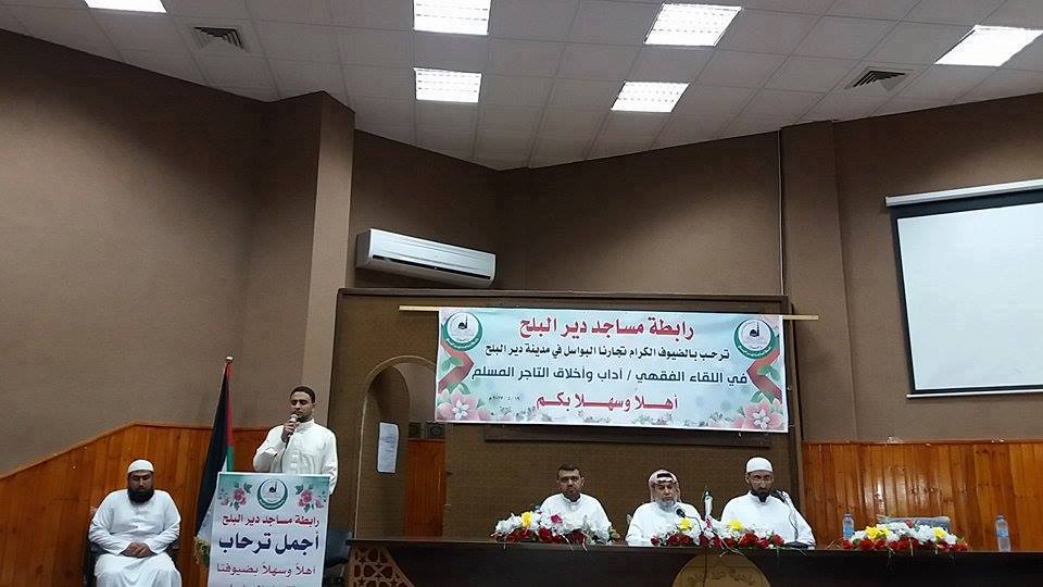 نظمت رابطة مساجد دير البلح لقاءً فقهياً مع تجار المدينة في قاعة بلدية دير البلح، حيث استضافت فيه مفتي محافظة خانيونس الشيخ الدكتور إحسان عاشور، وعضو رابطة علماء فلسطين الشيخ الدكتور محمد الفرا.