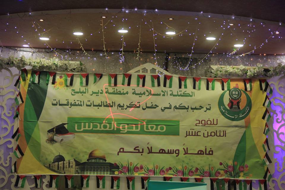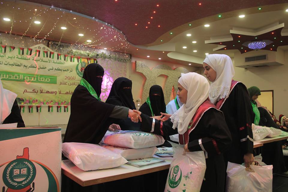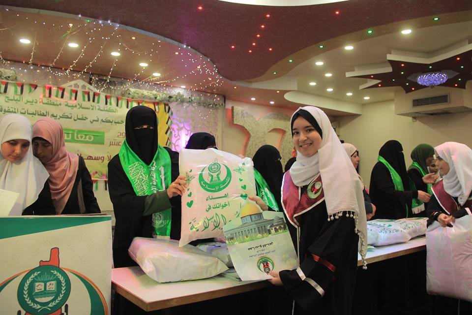 نظمت الكتلة الإسلامية في مدينة دير البلح وسط قطاع غزة حفلاً لتكريم الطالبات المتفوقات في المرحلة الثانوية.