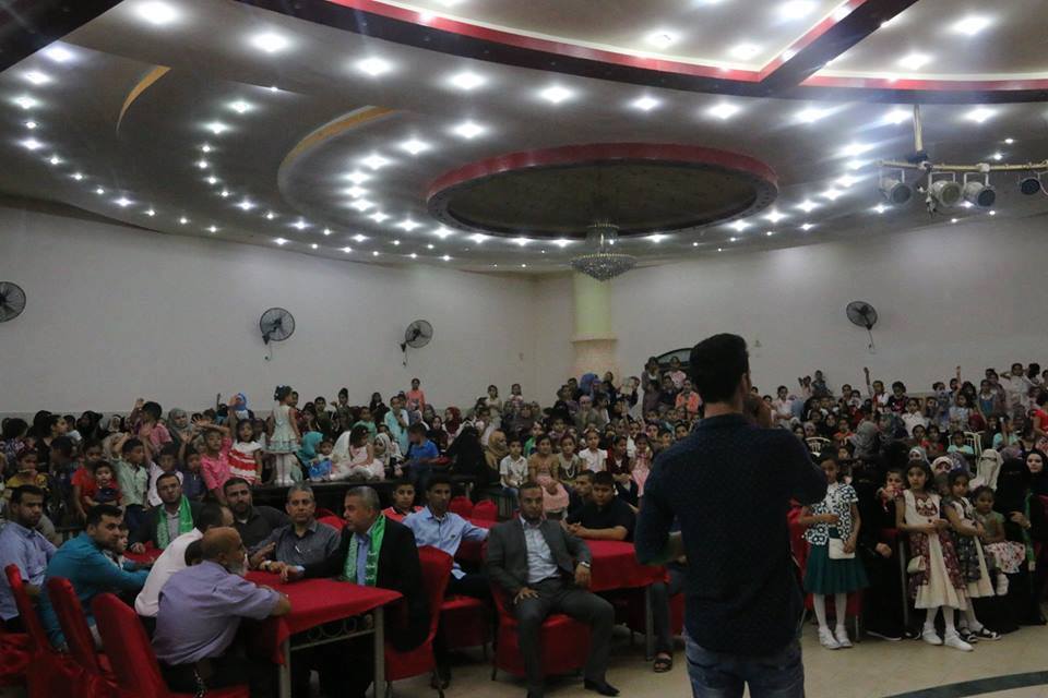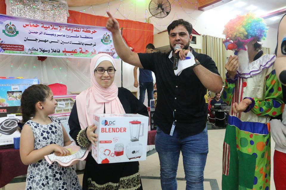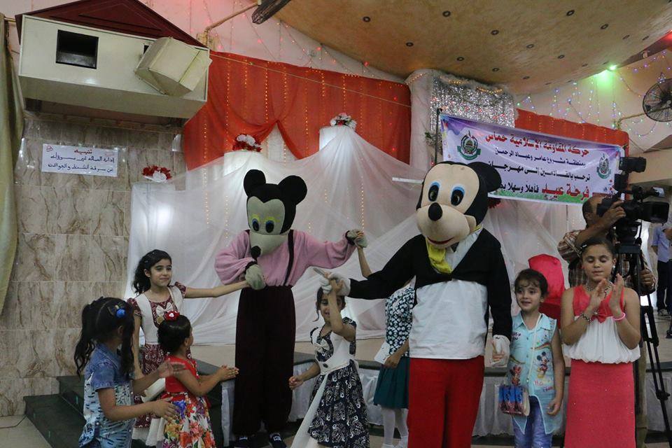 شارك مئات الأطفال والنساء والرجال في المهرجان الترفيهي الذي نظمته حركة المقاومة الإسلامية (حماس) في منطقة مشروع عامر وعباد الرحمن شمال غرب مدينة غزة والذي كان تحت عنوان "فرحة عيد".