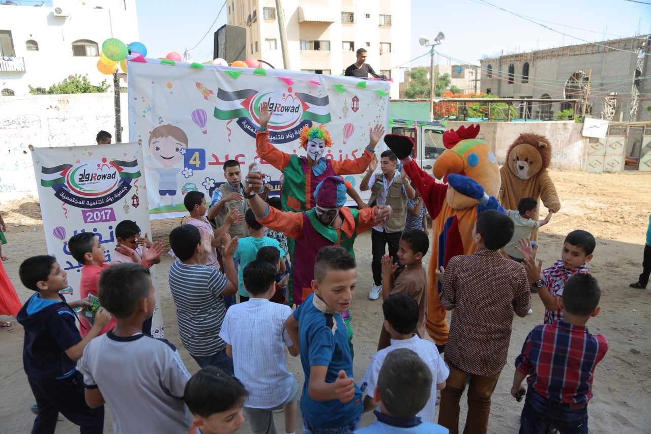 نفذت جمعية روّاد للتنمية المجتمعية "مشروع فرحة عيد 4"، وذلك صباح أول أيام عيد الفطر السعيد بمنطقة مشروع عامر وعباد الرحمن غرب مدينة غزة، حيث تضمنت الفعالية عقد الألعاب الترفيهية بمشاركة مهرجين قاموا بأداء حركات بهلوانية أمام الاطفال مع النشيد العذب وفي الختام توزيع الحلوى على الاطفال.