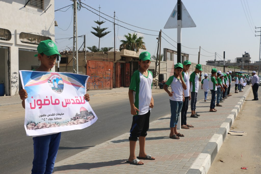 بالصور: مخيمات "للقدس ماضون" بالنصيرات تنظم سلسلة بشرية نصرة للأقصى