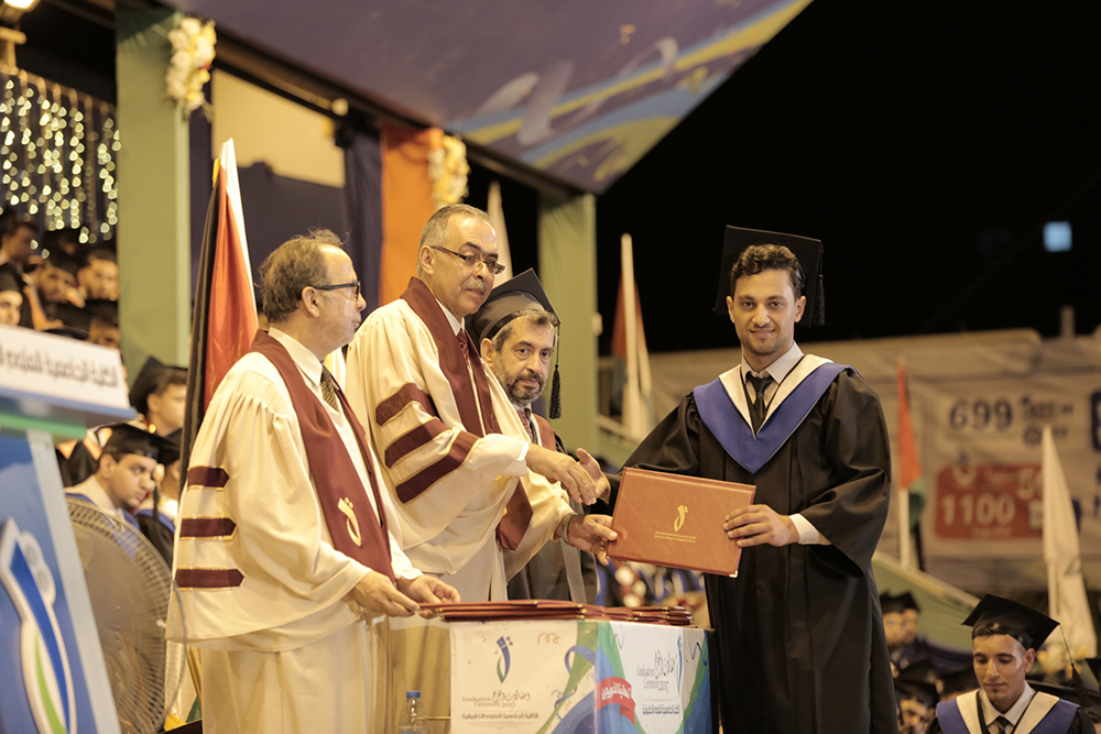 ومع انطلاق وقائع الحفل الختامي رحب الدكتور محمد العكلوك بالحضور، وقال: "إن الكلية الجامعية اليوم وهي تخرج فوجا جديدا من طلابها لتضيء شموعا مهمة في مسيرتها، فهي التي حرصت منذ أبصرت النور ان تقدم للمجتمع الفلسطيني نموذجا جديدا من الشباب الذي يسعى إلى التطوير ومواكبة كل جديد، فاحتوت على تخصصات نوعية في درجات البكالوريوس والدبلوم المتوسط والدبلوم المهني، كما وابرزت الجانب التطبيقي في تدريسها ليسير العلم جنبا إلى جنب مع العمل، ما يساعد خريجيها أن يجدوا فرصهم المميزة في ظل الظروف الصعبة التي يعيشونها.