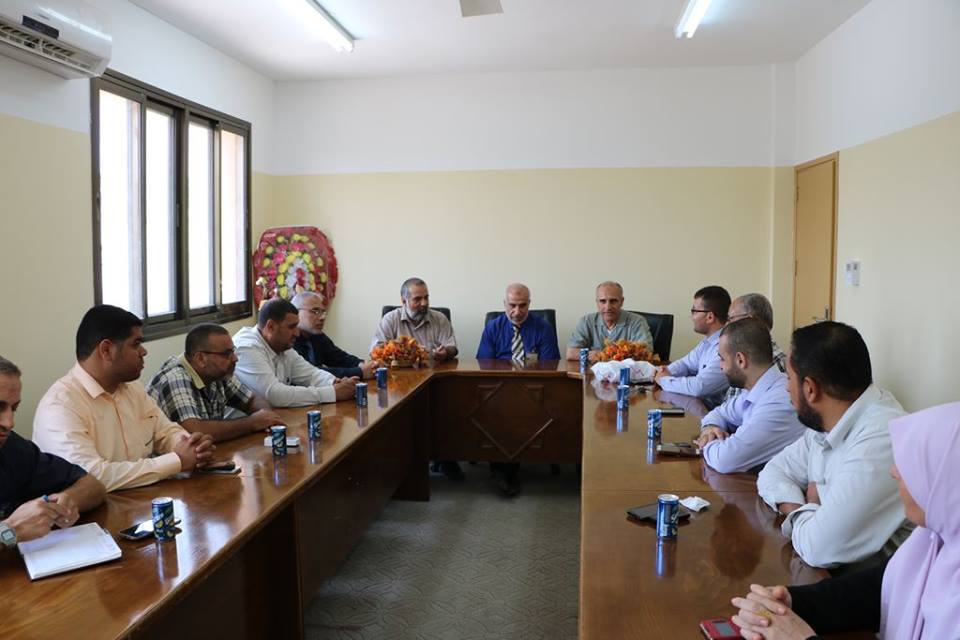 استقبل مدير التربية والتعليم بالوسطى علي أبو حسب الله وفداً من نقابة المعلمين بقطاع غزة ضم كل من نقيب المعلمين خالد المزين ونائبه محمد صلاح وأمين سر النقابة محمد أبو الروس وقيادة النقابة من كافة محافظات غزة، بحضور مديرا الدائرتين الإدارية ماهر أبو زر والفنية ناصر السدودي ورئيس قسم العلاقات العامة أحمد دلول.