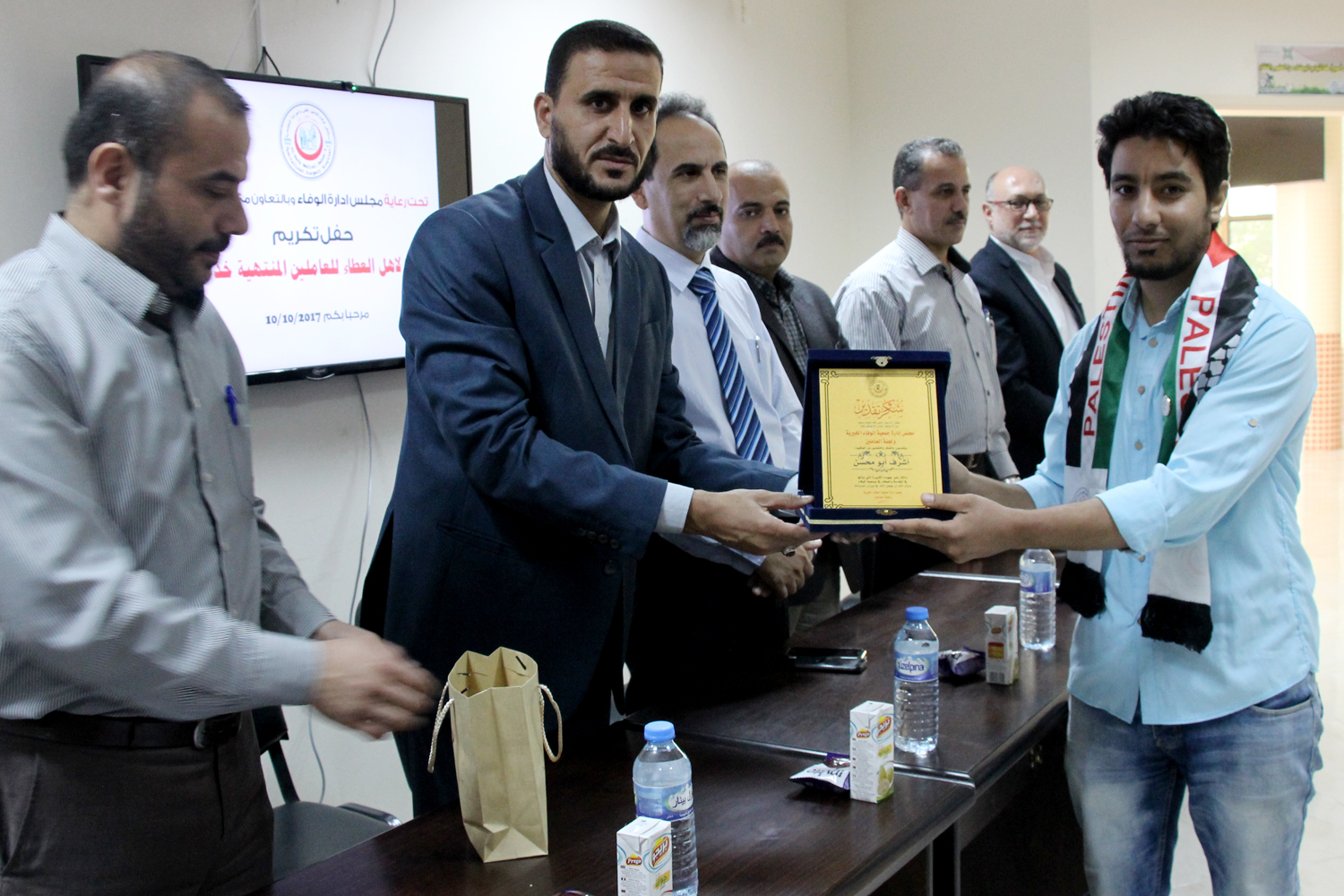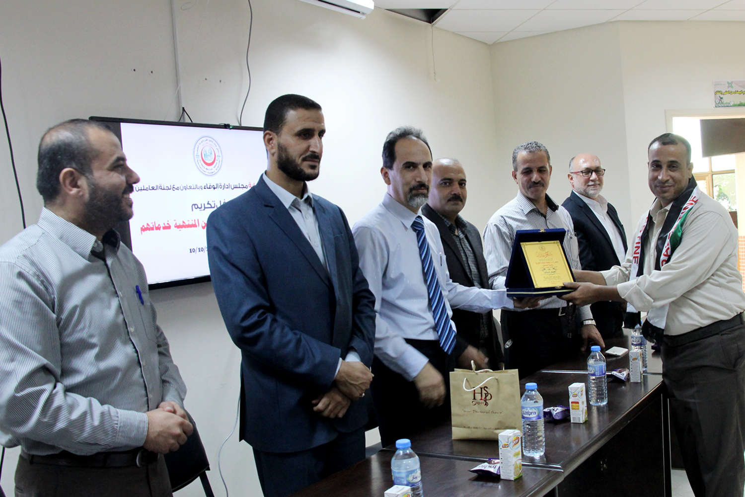 كرمت جمعية الوفاء الخيرية بالتعاون مع لجنة العاملين بالوفاء، موظفيها في برامجها المختلفة في مستشفى الوفاء للتأهيل الطبي ومركز الوفاء لرعاية المسنين في مدينة الزهراء وسط قطاع غزة بعنوان  " الوفاء لأهل العطاء للعاملين المنتهية خدماتهم".