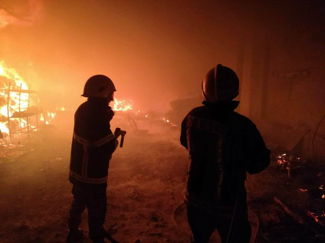 بالصور: الدفاع المدني يسيطر على حريق مستودع للأخشاب في عناتا