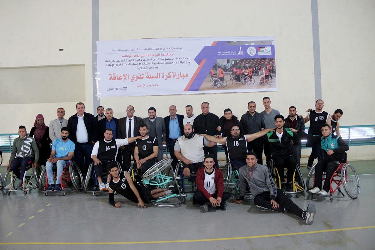 بمناسبة اليوم العالمي لذوي الإعاقة، استضافت جامعة الأقصى بطولة كرة السلة لذوي الإعاقة، وبالتعاون مع كلية التربية البدنية والرياضة وبالشراكة مع اللجنة البارالمبية، وشبكة الأجسام الممثلة لذوي الإعاقة، والتي كانت بين فريقي نادي السلام ونادي جمعية المعاقين.