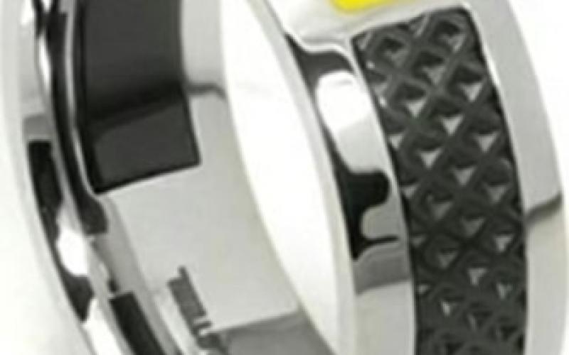 خاتم رجالي من الستانلس ستيل مرصع بحجر أصفر.