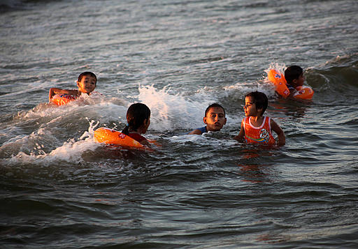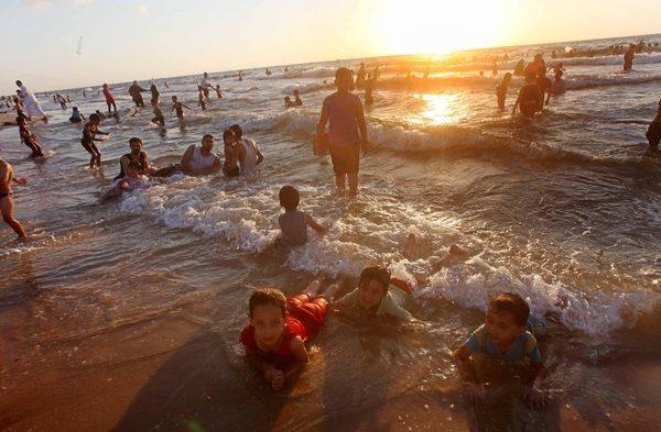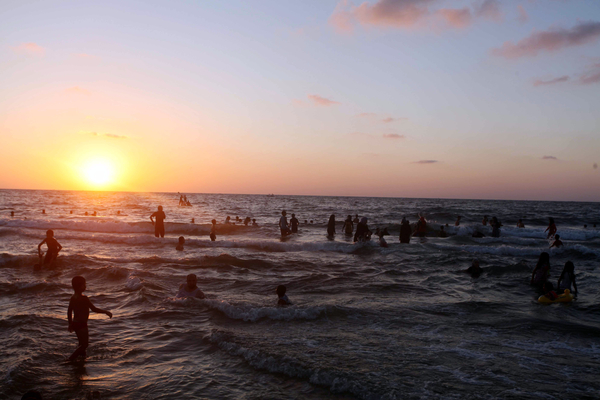 خبر: صور.. حر وبحر وغروب على شاطئ غزة