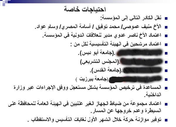 بعد فضيحة مشروع الذراع الضارب للواء ماجد فرج و المخابرات الفلسطينية والتى كشف عنها قبل عدة اشهر، بالتعاون و التواطؤ مع المدعو لؤي ديب، و التي تهدف لابتزاز مجموعة من الحكومات العربية، من خلال تقارير مزورة ينتجها لؤي ديب ليقوم فرج بتسويقيها و بيعها لأجهزة استخبارات عربية، بحجة التدخل لدى السيد ديب، و إقناعه بعدم النشر حرصا على " المصلحة " القومية. ها هو " بطن الحوت " ينفتح مرة اخرى، ليرمي اوساخا جديدة، تستهدف روح و مستقبل الشعب الفلسطيني، شباب وطلبعة فلسطين، من اجل تجنيدهم ضد إيمانهم الوطني و أحلامهم الشبابية بالاستقلال الوطني و الغد الأفضل، و لماذا يتجه فرج و سائر المؤسسة الأمنية الى اختراق صفوف هؤلاء الشباب؟، بدلا ان تقوم السلطة الفلسطينية بدعمهم، و تثبيت إيمانهم بعدالة قضيتهم، و اساليب عملهم و استقلاليتهم ؟؟. والسؤال الأهم، ما هو دور جهاز المخابرات الفلسطينية في القانون الاساسي للسلطة الفلسطينية؟، و هل هذا الدور لجهاز ضخم و مكلف ماليا للغاية هو التجسس على الداخل الفلسطيني و على دول الجوار العربي، و ضد شعوب و عواصم عربية بذلت الكثير مع الشعب الفلسطيني المكافح، ما مصلحة فرج في ايذاء الأردن و أمنه القومي و استقراره الداخلي، و لماذا يدفع فرج المال الفلسطيني مباشرة او مداورة لتجنيد أردنيين ؟ و لمصلحة من يجندهم ؟ او يتدخل في الانتخابات الاردنية بأموال مخابراتية و غطاء سياسي و امني اسرائيلي ؟ ، و ما مصلحته في ايذاء المملكة العربية السعودية التي قدمت منذ العام 1965 اكثر من خمسين بالمئة من احتاياجات الثورة الفلسطينية ؟ ، و هل هو يفعل ذلك منفردا ، ام بغطاء و دعم اسرائيلي مباشر ؟ ، و هل السيد محمود عباس على علم بكل تلك الجرائم. يعتقد اللواء فرج انه يبتدع وسائل عمل مخابراتية جديدة ، و يجهد نفسه لبيع هذا " الهبل المخابراتي " لمن يدفع او يقبل الابتزاز من الحكومات و الدول ، لكننا للأسف لم نر اجراء جديا واحدا لمحاسبة هذا النهج المدمر لسمعة و مهنة جهاز اسسه الشهيد القائد ابو اياد ، و قننه الزعيم الراحل ياسر عرفات ، جهاز قدم عشرات الشهداء في الانتفاضة الفلسطينية الثانية ، لم نر مساءلة فلسطينية داخلية. ولم نسمع عن مساءلة من دول عربية اساءت اليها مثل هذه الانشطة المشبوهة لخدمة اسرائيل ، و لا زلنا نرى ان فرج يستقبل في السعودية و الامارات و قطر ، و اكثر من ذلك في الأردن ، مع ان حكومات هذه الدول لا تستطيع ادعاء الجهالة بالحقيقة ، حقيقة ان فرج يستخدم الاموال الامريكية ليزرع منصات " شرعية " لإسرائيل في تلك الدول العربية. قبل ما ننشر اليوم كان هناك " الذراع الضارب" ، والهدف منه كان استخدام احدى المنظمات الدولية المعنية بحقوق الانسان لتكون وسيلة امنية واداة من ادواتها ، و اليوم نعلن حصول " ان لايت برس " من مصادره المطلعة وبدقة على الشأن الامني الفلسطيني على مشروع جديد للمخابرات الفلسطينية هدفه انشاء مؤسسة مظهرها العام مدني بينما جوهرها وطبيعة عملها هي امني - استخباري بحت. على ان تنشط هذه المؤسسة في الاوساط الشبابية الفلسطينية داخل الضفة الغربية وغزة ولبنان و الأردن وفي الاوساط الاكاديمية والتعليمية من اجل توجيه المؤسسات الاكاديمية والشبابية للعمل لصالح المخابرات العامة الفلسطينية وضمن توجهاتها [color=red]من اجل ضمان اكبر قدر ممكن من الالتزام السياسي والمشاركة الفاعلة لمواجهة حركة حماس التى مازالت وحسب العقيدة الامنية للمخابرات الفلسطينية تعد هي العدو الاول وليست اسرائيل او اجهزتها الامنية التى تتعاون معها المخابرات الفلسطينية تعاونا حيويا عبر ما يسمى بالتنسيق الامني والمدعوم بقوة من رئيس السلطة المنتهية ولايته محمود عباس.[/color] وفيما يلي نص المشروع كما وردنا من المصدر وسنقوم هنا بنشره كصور للوثيقة كما هي بأخطائها اللغوية والقواعدية والإملائية ، مع التنويه بأننا في ان لايت برس قمنا بالتضليل على اسماء الشخصيات الاكاديمية المقترحة في المشروع لاحتمال ان تكون هذه الاسماء اقترحت دون عل