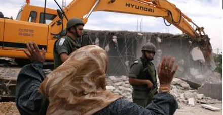 أقدمت جرافات الاحتلال على هدم ثلاثة منازل في قرى النقب المحتل عام 1948، صباح الأربعاء 29/8/2012. فقد داهمت جرافات الاحتلال تحميها قوات كبيرة من الشرطة (الإسرائيلية) قريتي: بير هداج ورخمة وشرعت بهدم ثلاثة منازل تعود لعائلتي دنون وأبو عطا، علماً بأن المنازل مشيدة منذ سنوات ولكن الاحتلال يدعي أنها غير مرخصة. وانتشرت قوات الاحتلال بكثافة في مواقع الهدم قبل إخلاء المنازل من سكانها ومنع أي مواطن من الاقتراب والتصدي لعملية الهدم. وفي ذات السياق سلّمت سلطات الاحتلال إخطارات بهدم منازل في حي البستان ببلدة سلوان جنوب المسجد الأقصى المبارك. وقال "فخري أبو دياب" رئيس لجنة الدفاع عن البلدة إن عناصر شرطة الاحتلال داهموا الحي وشرعوا بتسليم عائلات أبو دياب وأبو سنينة والرشق وأبو رجب إخطارات بهدم منازلهم بحجة عدم الترخيص. وأكد أبو دياب بأن تلك العائلات تسكن منازلها منذ عشرات السنين ولم تقم بأي خطوة بناء جديدة، الأمر الذي يؤكد على نية بلدية الاحتلال تنفيذ مشروع هدم الحي بأكمله قريباً؛ لإقامة حدائق توراتية للمغتصبين.