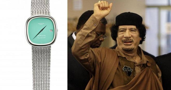 عُرضت ساعة الزعيم الليبي الراحل معمر القذافي، في إحدى دور المزادات في مدينة دبي الإماراتية، والساعة من طراز باتيك فيليب تم صناعتها في العام 1979 خصيصًا من أجله.