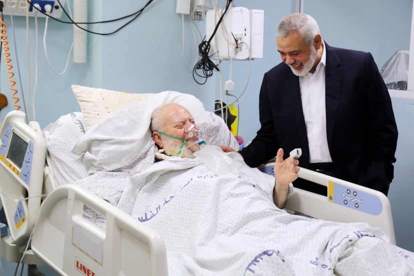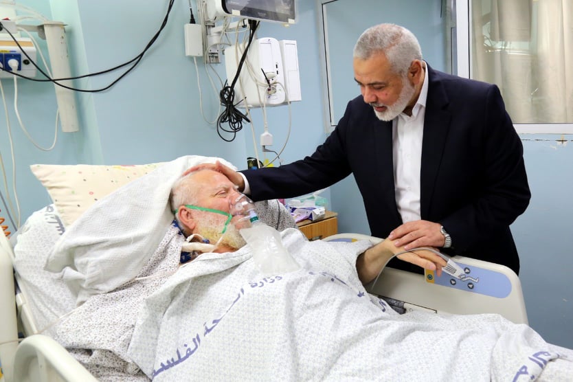 زار رئيس المكتب السياسي لحركة حماس إسماعيل هنية اليوم الجمعة، الشيخ الداعية حازم السراج. وقال مكتب هنية في تصريح صحفي، بأن زيارة الداعية حازم السراج؛ للاطمئنان على صحته بعد مرض ألمّ به.